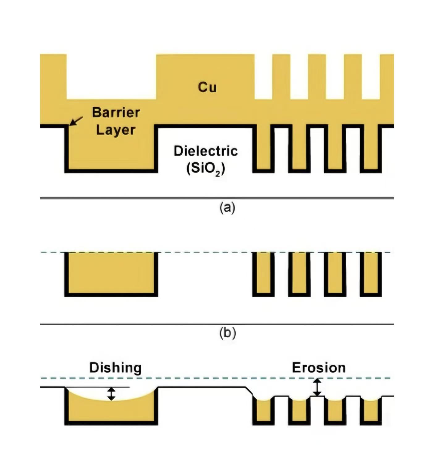 Is é snasú meicniúil ceimiceach (CMP), a chomhcheanglaíonn creimeadh ceimiceach agus snasta meicniúil chun neamhfhoirfeachtaí dromchla a bhaint, an próiseas leathsheoltóra suntasach chun pleanáil iomlán a bhaint amachsliseagdromchla. Mar thoradh ar CMP tá dhá locht dromchla, miascadh agus creimeadh, a théann i bhfeidhm go mór ar maoile agus ar fheidhmíocht leictreach na struchtúr idirnasctha.