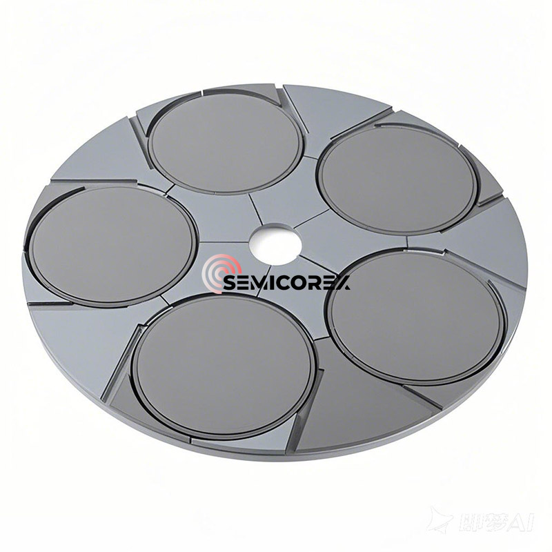 Is comhpháirt graifíte ard-íonachta é SEMICOREX Planerary Suseptor le sciath SIC, atá deartha le haghaidh imoibreoirí Aixtron G5+ chun dáileadh teasa aonfhoirmeach, friotaíocht cheimiceach, agus fás ciseal ardcháilíochta a chinntiú.*