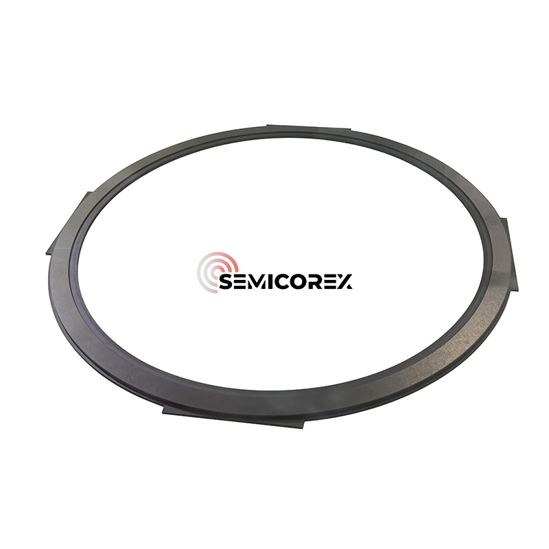 Is gné chriticiúil de dhéantús leathsheoltóra é fáinne imeall semicorex sic, a mhonaraítear trí sil -leagan gaile ceimiceach (CVD), agus tá ról tábhachtach aige sa phróiseas monaraithe i ndlísheomraí eitseáil plasma. Tá an fáinne imeall suite timpeall imeall seachtrach an Chuck Leictreastatach (ESC) le linn an phróisis eitseáil plasma agus tá caidreamh aeistéitiúil agus feidhmiúil aige leis an bpróiseas wafer.