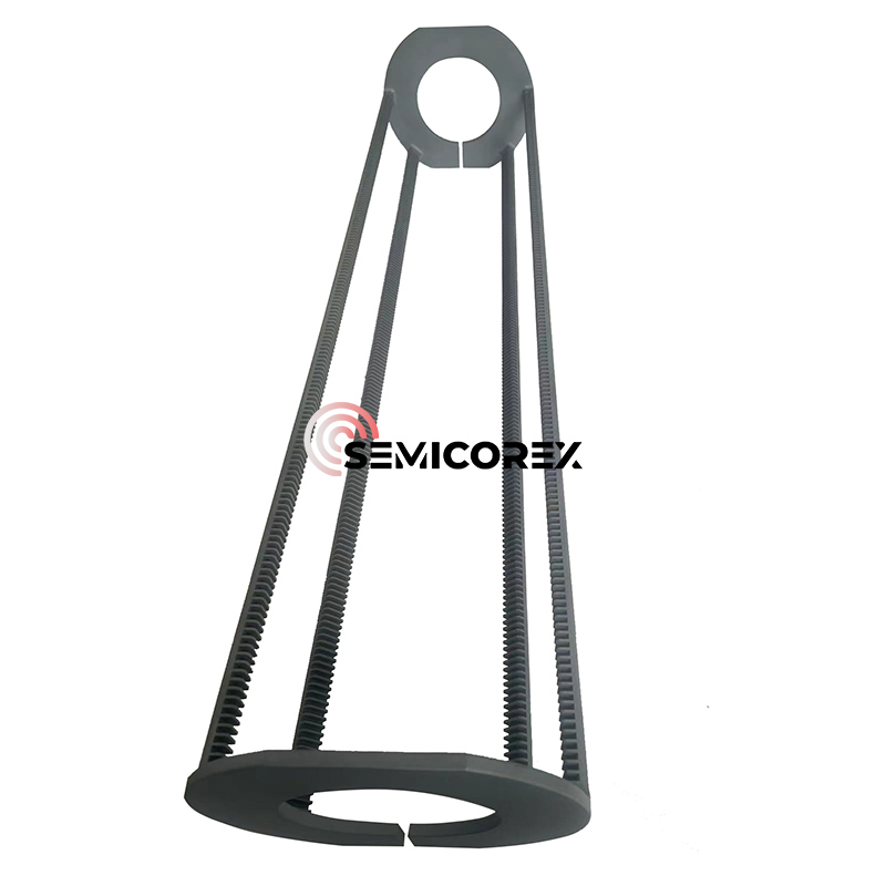 Éilíonn na timpeallachtaí próiseála foirnéise ingearacha córas tacaíochta sliseog ar féidir leo neamhchosaintí a sheasamh arís agus arís eile ag teocht ard, go minic níos mó ná 1,200 ° C, agus fanann siad seasmhach ó thaobh na dtréimhs de gan saincheisteanna éillithe. Tá báid ingearacha Sic ag dul i léig ina n -stóinseacht sna cásanna seo mar gheall ar airíonna meicniúla agus teirmeacha intreacha cairbíd sileacain athchúrsáilte nó CVD. Cinntíonn a gcomhéifeacht leathnaithe teirmeach an -íseal an leathanach nó an saobhadh íosta mar gheall ar rothaíocht theirmeach thapa. Ina theannta sin, cuireann an seoltacht theirmeach ard an aonchineálacht teochta áitiúil is mó ar fáil ar fud gach sliseog, atá ríthábhachtach do chomhsheasmhacht sliseog-go-werfer i dtiús ciseal, próifílí dópála, agus feidhmíocht leictreach; Gnéithe tábhachtacha de dhéantúsaíocht ardtoirte sa tionscal leathsheoltóra.