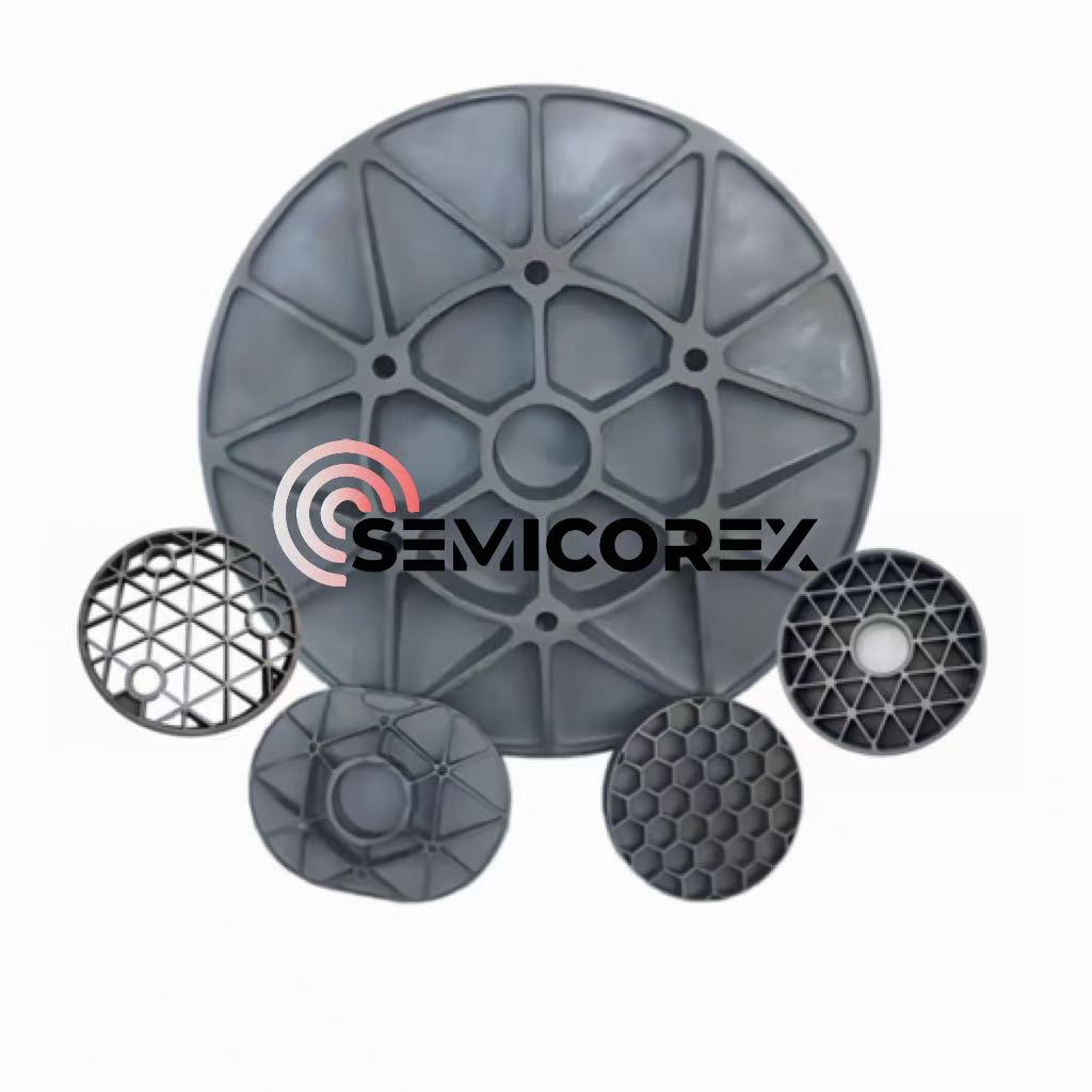 Chun áisiúlacht oibriúcháin a fheabhsú agus tomhaltas fuinnimh trealaimh a laghdú, úsáideann Semicorex ard-stiffnesschomhdhúile sileacainchun na bearnaí scátháin a mhonarú agus ionchorpraítear struchtúir chasta laitíse laistigh de na bearnaí chun riachtanais éadroma scátháin frithchaiteacha chomhdhúile sileacain a bhaint amach. Laghdaíonn an meascán seiftiúil seo de roghnú ábhar agus dearadh struchtúrach go mór meáchan an chomhdhúile sileacain a léiríonn scátháin agus a stiffness á chothabháil. Mar thoradh air sin, áitíonn cairbíd sileacain a léiríonn scátháin suíomh buntáiste do-athsholáthair i réimsí mar aeraspáis agus taiscéalaíocht dhomhain spáis.