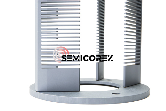 Is féidir le Semicorex struchtúr bád wafer sileacain a shaincheapadh, lena n-áirítear an cruth slat groove, fad fiacail groove, cruth, uillinn tilt, agus cumas luchtaithe iomlán wafer, agus is féidir é a tháirgeadh de réir riachtanais an chustaiméara. Is féidir le báid sileacain ardteochta an damáiste teagmhála do sliseog sileacain a laghdú go héifeachtach agus toradh próisis a fheabhsú. Ní thacaíonn a dhearadh ardteochta "túir gan duillín" le sliseog ach ag barr na fiacaile tacaíochta. I gcomparáid lechomhdhúile sileacain, tá cruas réasúnta íseal ag sileacain, rud a laghdaíonn damáiste meicniúil do sliseoga, rud a fheabhsóidh ráta pas laitíse agus go laghdaítear costais táirgthe go héifeachtach. Tá an bád sileacain comhleáite comhdhéanta de roinnt codanna: fiacla, pláta bonn, agus pláta barr, atá comhleádh le chéile. Laghdaíonn sé seo costais táirgthe. I gcás damáiste páirteach, is féidir na codanna damáiste a athsholáthar gan an bád sileacain iomlán a athsholáthar, ag laghdú go mór costais úinéireachta le linn úsáide. Ina theannta sin, tá teorainn uachtarach mór ag an mbád sileacain maidir le taisceadh polysilicon, rud a d'fhéadfadh minicíocht trealaimh PM a laghdú go héifeachtach agus cumas táirgthe a fheabhsú.