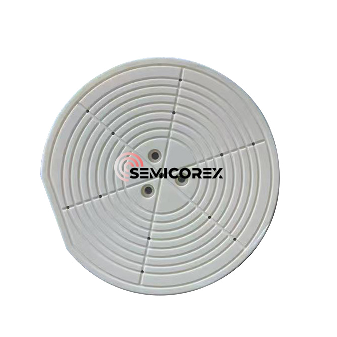 Semicorex Wafer Edge Is cuid cheirmeach tiomnaithe é Chuck a dhéantar don phróiseas meilte imeall sliseog le linn déantúsaíochta leathsheoltóra. Tá an ceirmeach déanta as íonacht ard, alúmana bán (al₂o₃) le neart meicniúil, friotaíocht cheimiceach, agus cobhsaíocht tríthoiseach chun tacú leis an bpróiseas meilte sliseog. De réir mar a éilíonn teicneolaíochtaí nua trastomhais sliseog níos mó agus struchtúir níos íogaire sna feistí, tá ról suntasach ag meilt imeall an tsleasa anois maidir le scealpadh imeall, micrea-scáineadh agus toradh a chosc. Soláthraíonn an Chuck meilte ceirmeach alúmana bunlíne seasta ar féidir leis na riachtanais dhin -déantúsaíochta seo a chomhlíonadh.